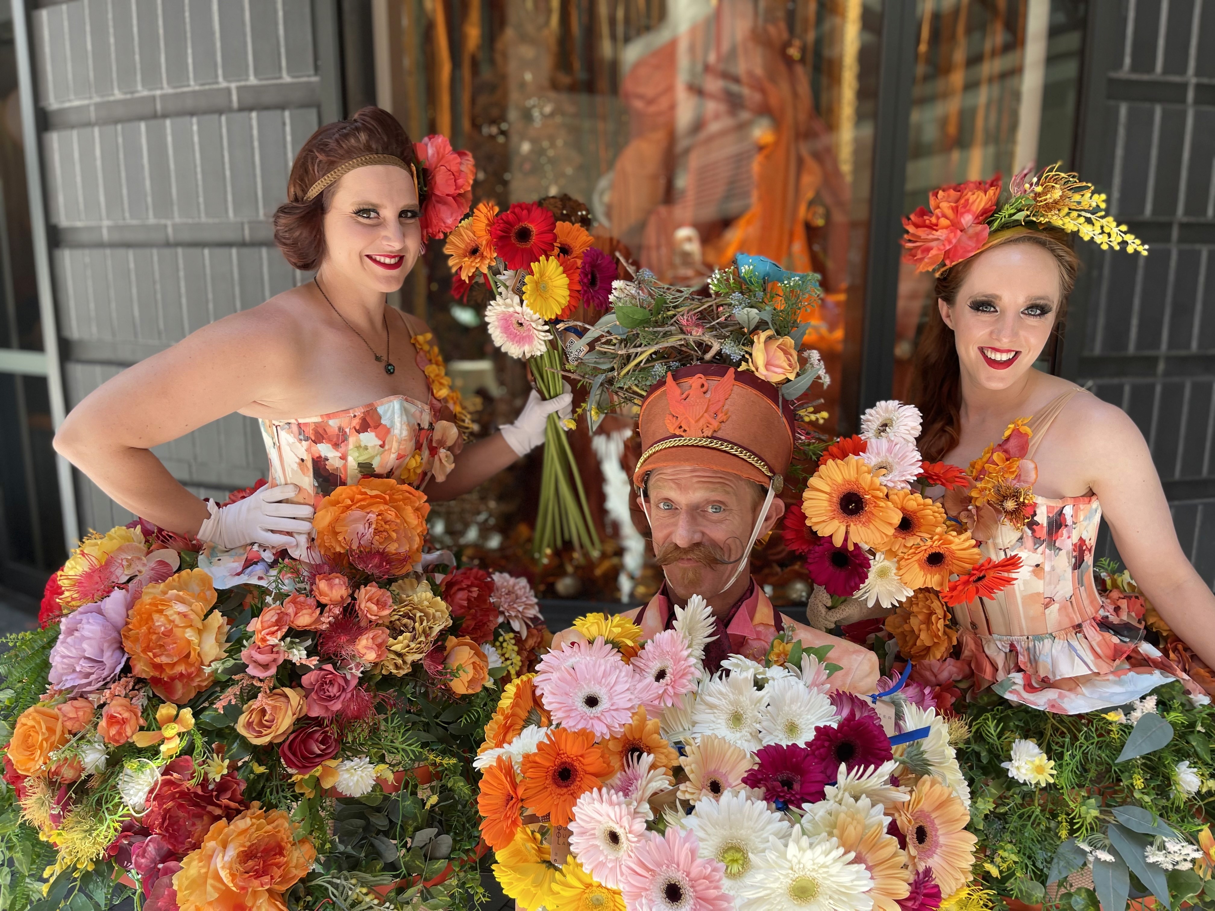 Flower Squad - A burst of spring, sunshine, and smiles, The Flower Squad bring warmth and charm wherever they roam. This delightfully floral gentle duo are devoted to spreading joy and gentle moments of wonder. With graceful interactions and radiant hand made costumes, they invite audiences to breathe in beauty and remember the loveliness of life. Perfectly poised and effortlessly enchanting, The Flower Squad are the ideal living snapshot for an elegant, joy-filled experience.