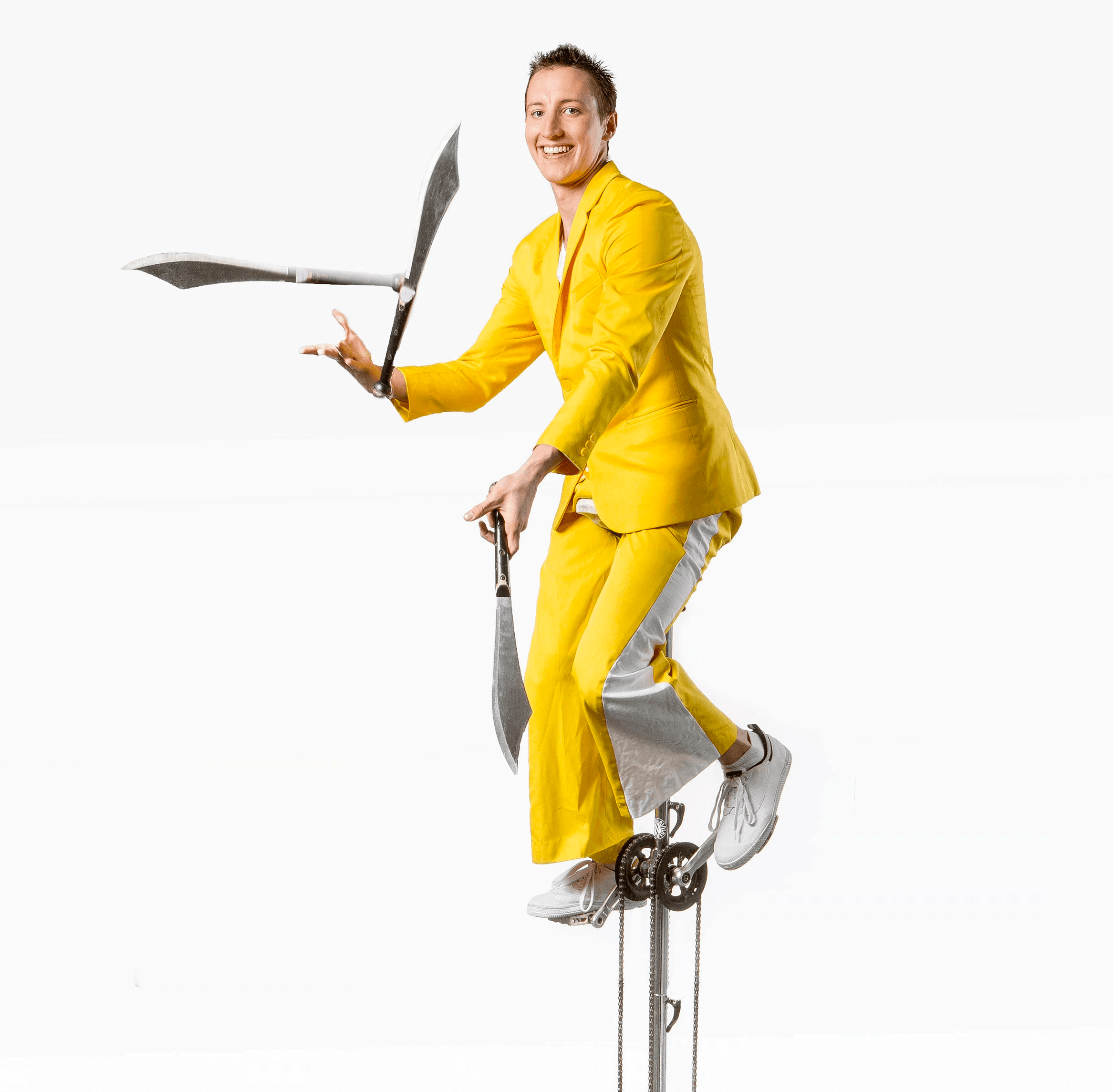 You might recognise Katie as Mimi from Hoopla Doopla on ABC! No matter what character Katie is playing, she will amaze you with her daring gulling of clubs, knives, fire and eggs! Be prepared for dexterous hula-hoop madness while Katie Wright Dynamite spins hula-hoop all over her body including spinning 35 hoops at one time!