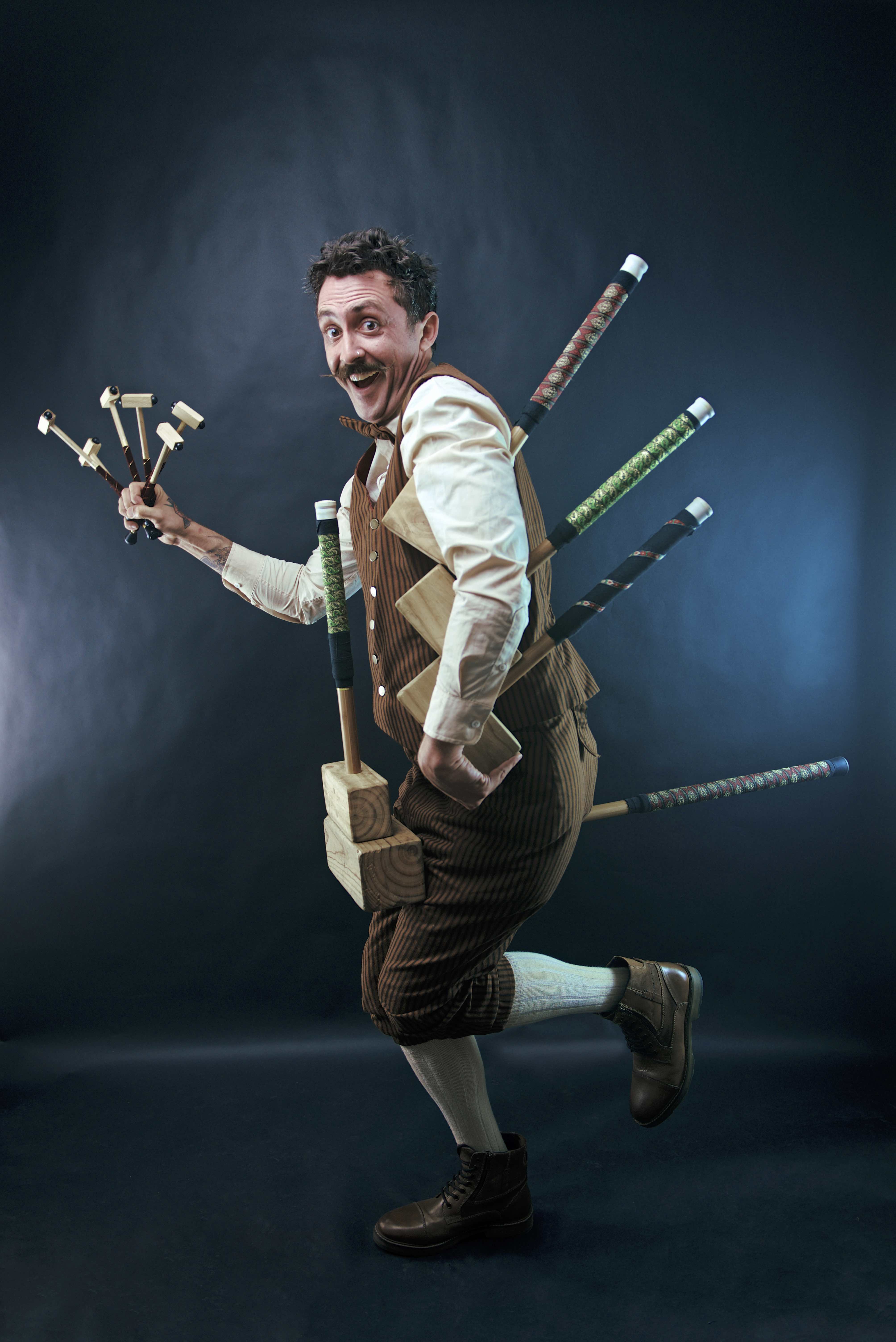 Master manipulator of mallets. Equilibrist of eccentric excellence. Sit back as Uno takes his audience on a journey of wonderment using his mallets to spin, balance, throw, catch and amaze. Perhaps Mum and Dad might find themselves handling a mallet of their own as they play a part in his fabled melodic, audience-powered live musical band. Who knows with Uno? Uno is sure to be a unique experience for the whole family. The one and only...Uno one of many, is a must see!